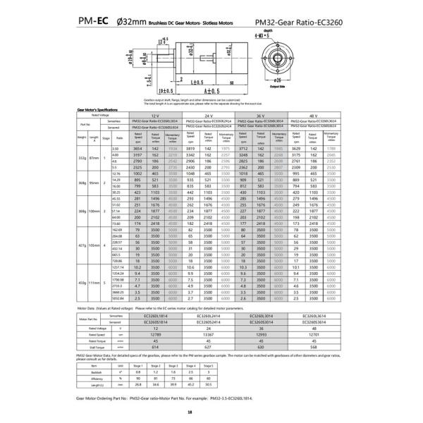 Key Specifications for this Ø 32mm dc brushless gear motor: